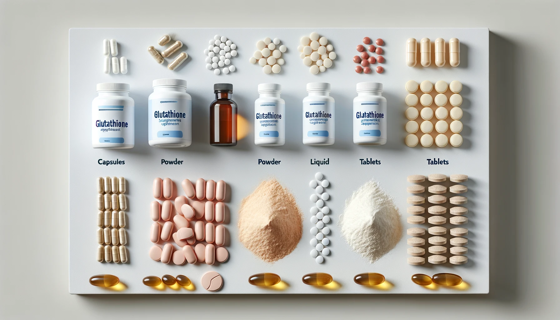 글루타치온 영양제는 가장 간편하고 대중적인 섭취 방법입니다. 알약, 캡슐, 액상, 파우더 등 다양한 형태로 판매되고 있으며, 함량과 성분도 다양하여 선택의 폭이 넓습니다.