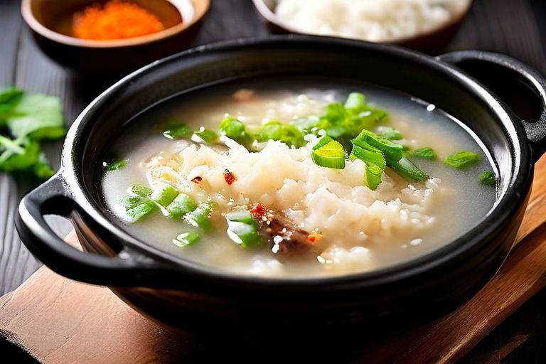 - 찹쌀에 다진 마늘을 넣고 고아 만든 탕수입니다.