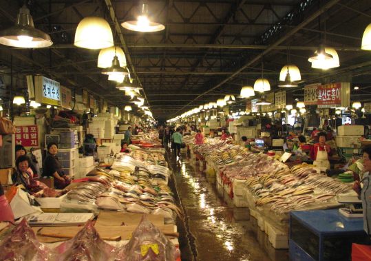 여수 수산시장 (전라남도 여수시) - 여수 수산시장은 2일과 7일에 열리며, 신선한 해산물과 여수의 특산품들이 판매됩니다. 특히, 오징어와 새우 등이 인기 품목입니다.