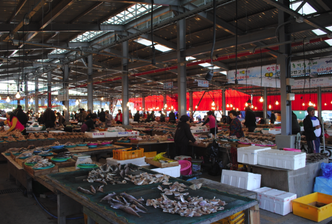서귀포 매일올레시장 (제주특별자치도 서귀포시) - 매일올레시장은 2일과 7일에 열리며, 서귀포 지역의 특산물과 함께 제주 전통 음식을 즐길 수 있습니다.